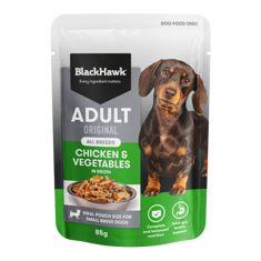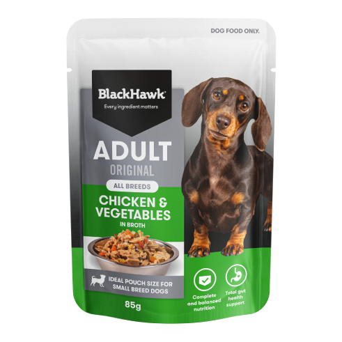 As a pet parent, it’s natural to want to offer your dog a range of textures and flavours. Black Hawk’s new Chicken and Vegetables has been specifically designed to help keep mealtimes interesting, without compromising your dog’s balanced nutrition. The wet food is served in a rich and delicious broth, and includes nutritious vegetables and chicken, a highly digestible and versatile protein that’s packed with amino acids essential for building strong bones and muscles.